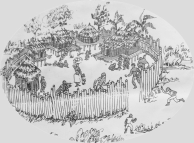 Podemos comparar esta imagen de la ciudad india con la imagen de la misma ciudad en 1700, tal como aparece en el mapa “El país paez”, siendo ya esta una ciudad española, construida sobre las ruinas de la ciudad india, que fue arrasada por los conquistadores durante la guerra de sometimiento.