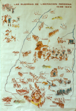 En versiones más recientes de “La guerras de liberación indígena”, además de las distintas campañas de las guerras libradas por los indios contra los españoles, aparecen los luchadores pijaos y paeces, encabezados por sus caciques respectivos, Calarcá y la Gaitana. Popayán, el Nevado del Huila y los ríos Cauca y Magdalena sitúan territorialmente el escenario en que se libraron estas batallas.