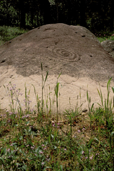 Se trataba de una roca grande, muy enterrada y casi plana por encima, con la superficie llena de petroglifos de espirales y círculos concéntricos (Fig. 2), al menos eso era lo que yo veía, pero los guambianos dijeron que se trataba de caracoles y que el sitio es srurrapu. Y explicaron: “aquí está la historia, esta es la historia, porque la historia es un caracol”. Además, dicen los guambianos, es un caracol que camina. Esta idea tiene muy poco que ver, aunque se pudiera encontrar alguna semejanza, con las concepciones de Mircea Eliade sobre el eterno retorno (“El mito del eterno retorno”, Alianza, Madrid, 1972) o sobre la concepción cíclica que, dicen algunos antropólogos, fundamenta el pensamiento mítico, no solamente en Colombia sino también en otras regiones del mundo.